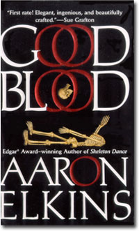 Any mystery writer will tell you, that one of the key ingredients in a mystery, is the body. A standard rule is you have to have a dead body within the first three pages or your reader is going to lose interest. That being said, there are always people that are going to break the rules and still become successful writers. In Good Blood, Aaron Elkins doesn't let the body arrive until page 22! That's right. You read that sentence correctly. The dead body or bodies don't appear till you are 22 pages into this gripping novel. And not a lot of writers can get away with that, but Aaron Elkins makes you wait for it, makes you savor every word. The story begins 30 years before it actually starts. Aaron has set up a wonderful backdrop of Italian villas and villains. You become so completely involved in your character's history before you ever get to any murder scenes that there are a few people that you want to see die before you hit that 22 page mark. But this doesn't mean his bad characters are all bad. Aaron let's you see their human side too, and that makes it feel all the more real. The bone detective, Gideon Oliver arrives via a vacation with his wife. And of course he's bored and really wants something to distract him. And then it arrives, old bones are uncovered. I love how he knows enough Italian to keep silent. And the sarcastic remarks and humor that pass between them are so like a married couple. It's just so satisfying.